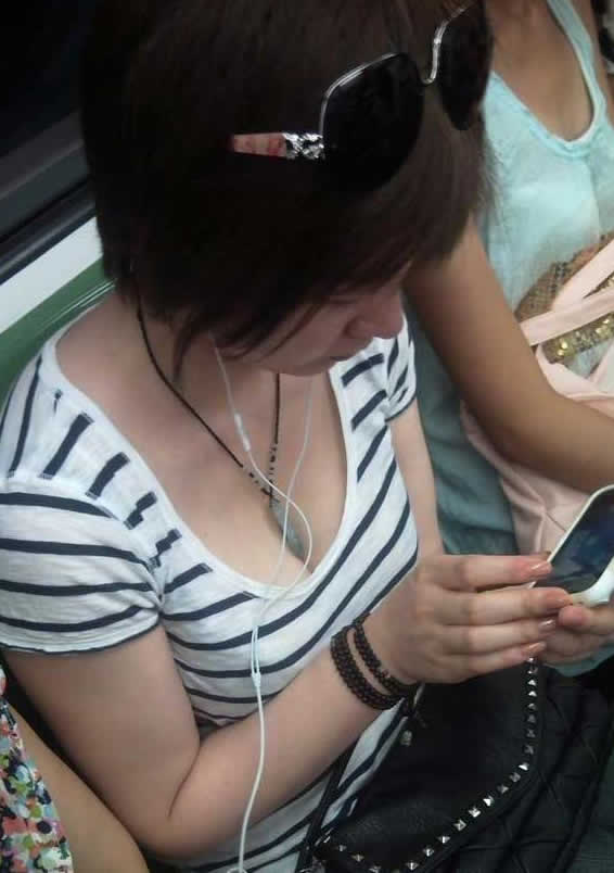 夏天来了客车上的空调抵挡不住气温的炎热低胸美女性感绽放吧(3)