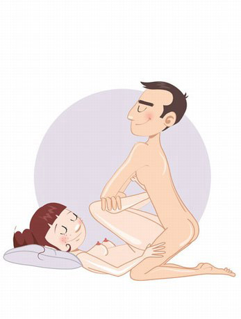 女生仰卧,单腿弯曲,另一腿伸直,双腿呈张开姿势,男人则跨过女人的一条腿之上,双膝跪地,让阳根挺进,直捣黄龙,为女性带来愉悦的高潮。此招数非常实用,享受程度比较高的。方便挺进,节奏可以随意控制。