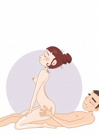 男生仰卧,女生则横跨在他身上,呈骑牛姿势,来回移动自己的身体,女生可以很好的控制被插入的深度,和动作的幅度。而男性则可以用双手来回推动女性的屁股在阴茎上面扭动。节省女生的体力,可以更快的达到快感