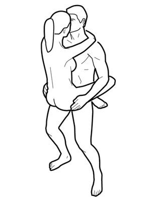站立式对男女而言都是难度最高的性交姿势,因为女伴通常都要让男性在某些时间承托她的 重量。如男女双方是面对面,就要用到身体核心肌肉和大腿力量;如女伴是单腿着地,那么就必须要用到腿部的力量,保持直立,同时身体核心肌肉则要用力,以确 保平衡;如女伴双脚都盘在男性身上,女伴就需要有良好的手臂力量才能抱住对方。这就是说,无论是哪一种,在站立式中,女伴都必须具有良好的体能。如果男女 双方朝向同一个方向,那么锻炼的肌肉就跟后进式一样:女伴需要用核心肌肉维持平衡,她可通过用双手扶墙壁或者床头来提高对伴侣的反应动作。